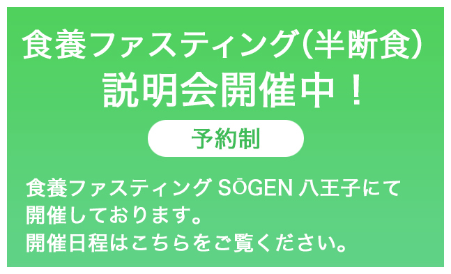 注)食養ファスティング(半断食)による効果の感じ方には個人差があり、各人が望まれる効果・効能を保証するものではありません。
